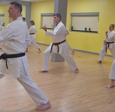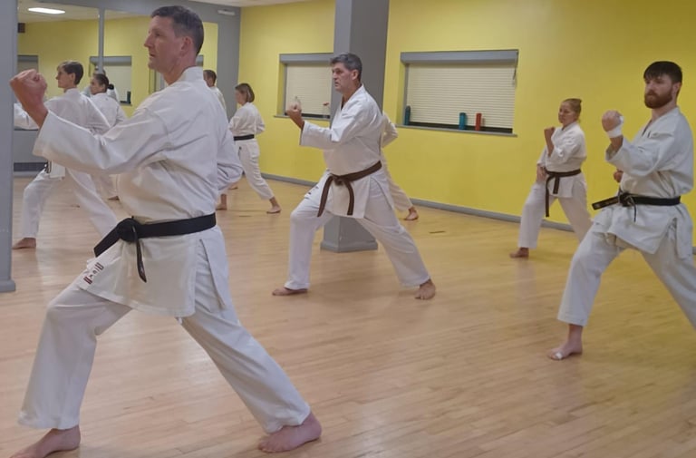 The adult focused nature of our sessions allows us to blend various training styles and goals including, competition, self-defence and the basic training of Kihon and Kata.